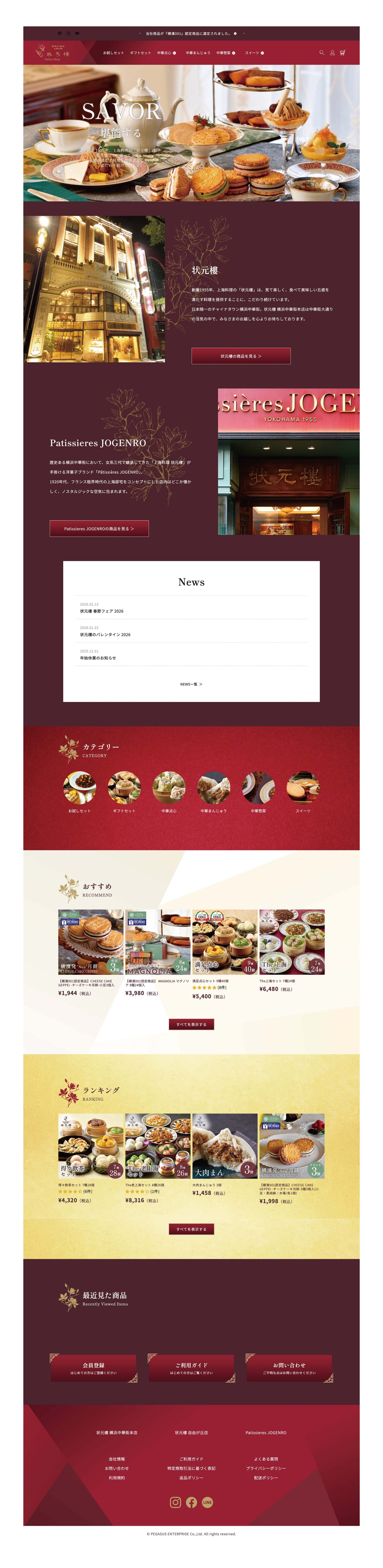 株式会社ペガサスエンタープライズ様が運営される横浜中華街の高級中華レストラン、状元樓様のECサイトリニューアルを担当しました。